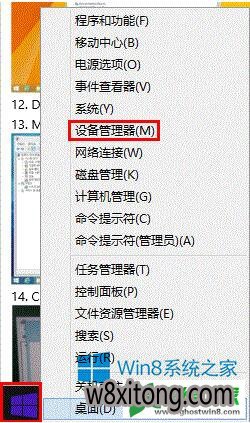 9、重启将进入安全模式,鼠标右键点击“开始菜单”选择“设备管理器”;