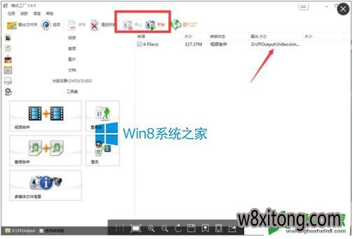 3、点开始。过一会它就合并好了,合并好了之后在箭头那里是输出的位置 。