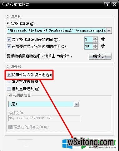 7、之前,务必点选系统失败记录在案选项,否则蓝屏不能记录蓝屏事件(可能会被优化掉):控制面板→系统→高级→启动和故障恢复→系统失败→勾选将事件写入系统日志→确定。