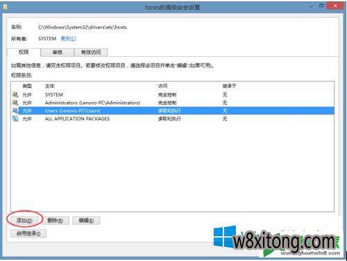 win8系统Hosts文件修改后无法保存设置权限的还原教程