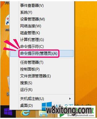 这里以操作系统win8.1为例,右键开始菜单选择[命令行(管理员)]打开命令行