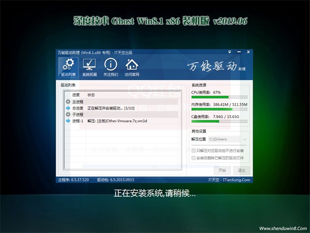 四、深度技术Win8.1x86位安装说明:
