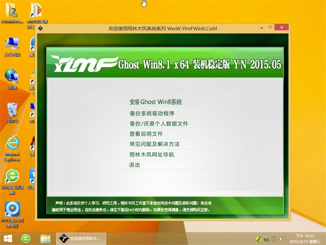 雨林木风 GHOST WIN8.1 64位 装机稳定版 2015.05