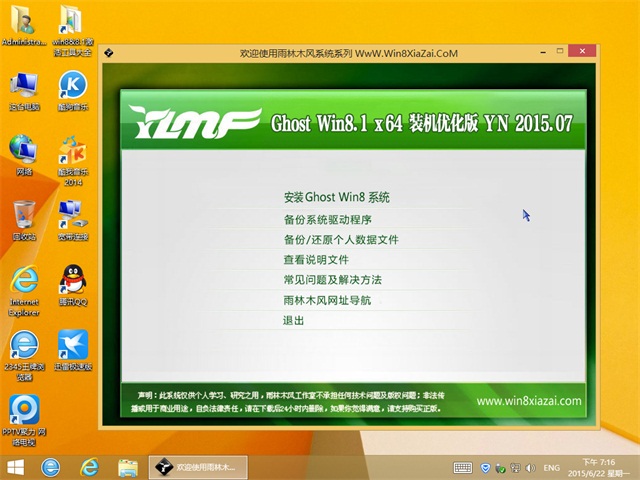 雨林木风 Ghost Win8.1 X64 (64位) 官方专业版 V2015.07