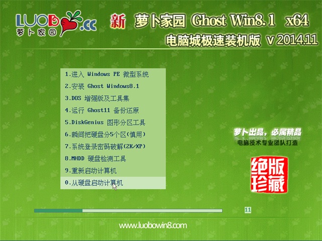 新萝卜家园Ghost W8.1 X64 (64位)电脑城极速装机版 v2014.11+