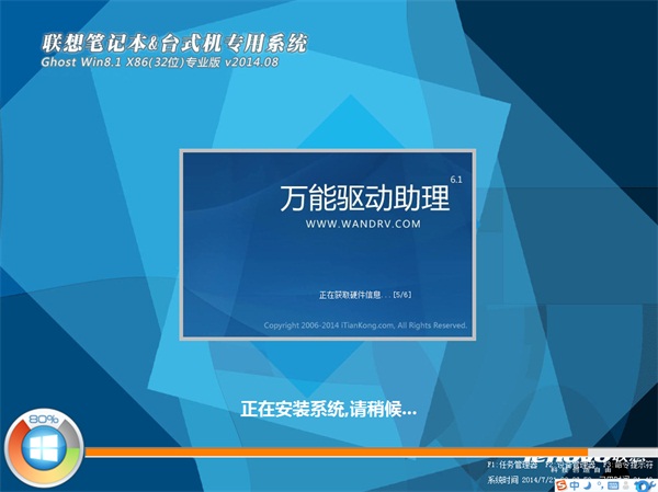 联想笔记本&台式机专用系统 Ghost W8.1 X86 专业版 v2014.08