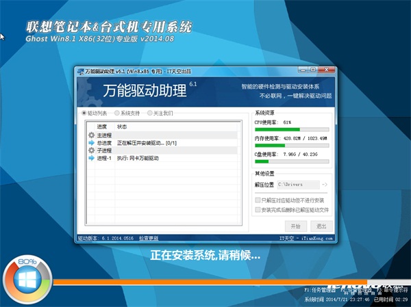 联想笔记本&台式机专用系统 GhostW8.1 X86专业版(32位)2014.08