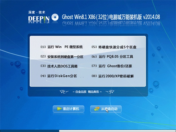深度技术 Ghost W8.1 X86(32位)电脑城万能装机版 v2014.08