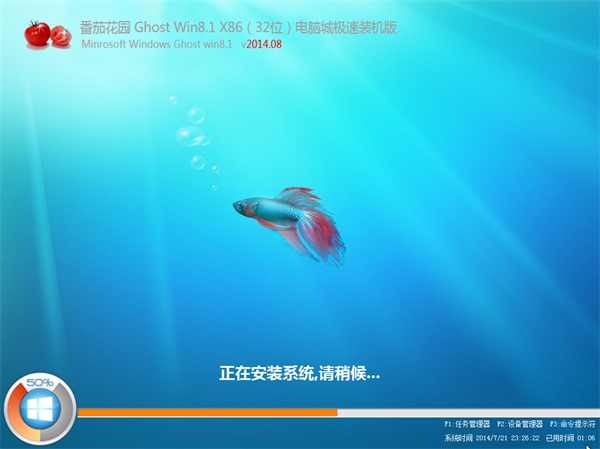 欢迎使用 番茄花园 Ghost W8.1 X86 电脑城海驱极速装机版 v2014.08