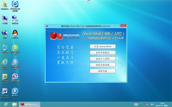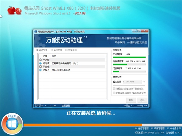 番茄花园 Ghost W8.1 X86(32位)海驱极速装机版 v2014.08