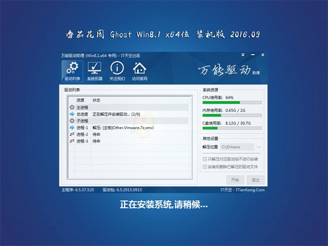 4、安装过程会运行自主开发的驱动选择工具,此工具可智能判断所有的电脑硬件型号,最大限度地避免了因驱动冲突而蓝屏的现象。