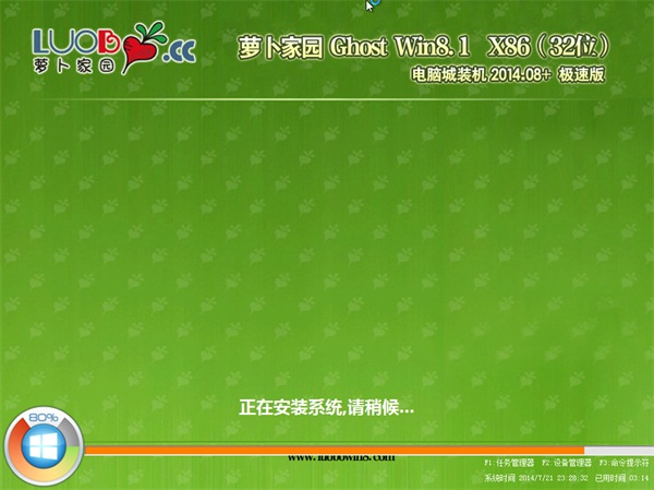 新萝卜家园Ghost W8.1 X86电脑城极速装机版(32位) v2014.08