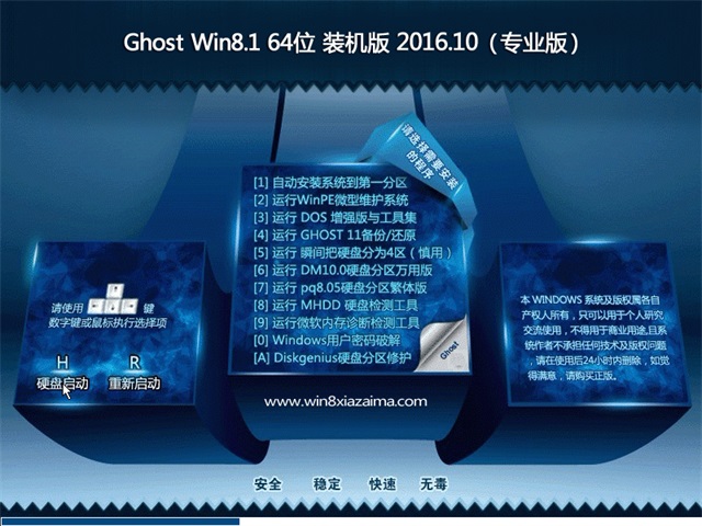 黑云系统Ghost Win8.1X64位2016.10系统下载集成了自2016年流行的各种硬件驱动,首次进入系统即全部硬件已安装完毕,黑云系统采用最佳的方法对系统进行了极速优化,黑云系统Win8.1X64位在稳定的基础上极限发挥系统最好的性能,支持一键无人值守安装、自动识别硬件并安装驱动程序,大大缩短了装机时间!