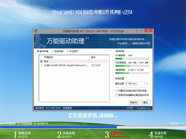 -集成常见硬件驱动,智能识别+预解压技术,绝大多数硬件可以快速自动安装相应的驱动;