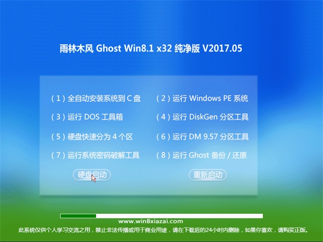 1、雨林木风Win8.1x32位纯净版系统完全是个人兴趣爱好,禁止任何机构及个人将此系统作为商业用途!