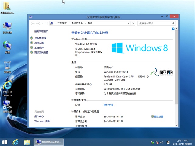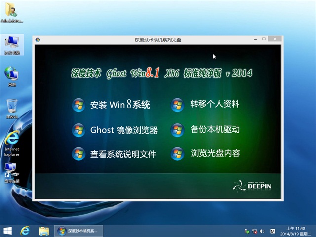 深度技术 Ghost W8.1 X86 标准纯净版 v2014(32位)