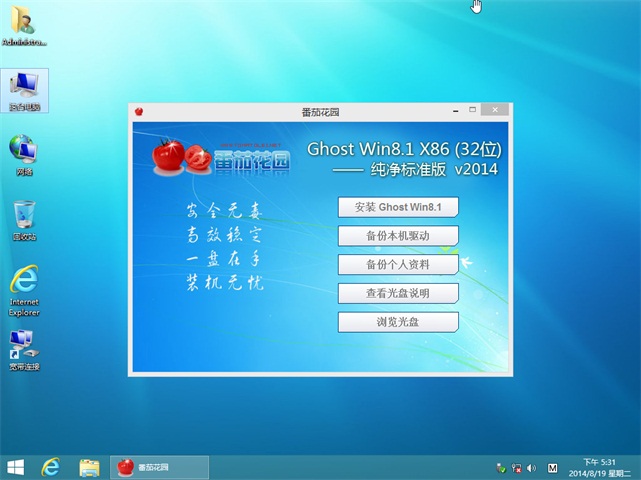 番茄花园 Ghost W8.1 X86(32位)纯净标准版 v2014【[强烈推荐】
