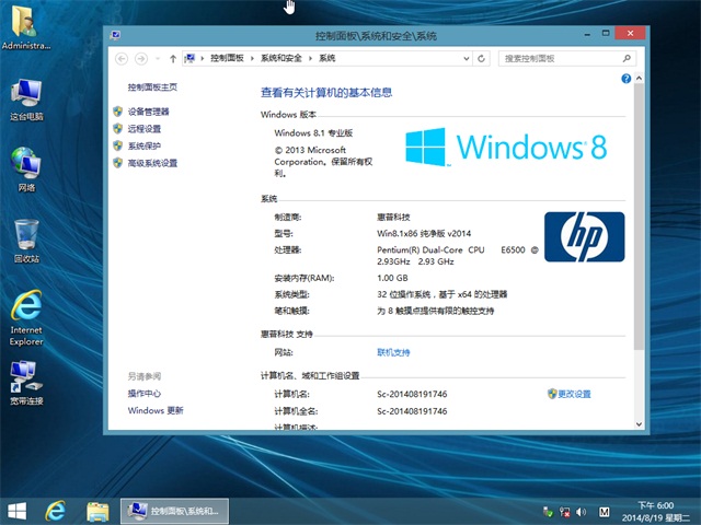 惠普笔记本&台式机专用系统 Ghost W8.1 X86 专业纯净版 v2014