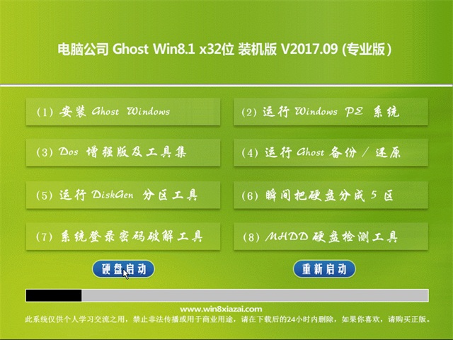 电脑公司Win8.1x32位装机版系统仅用于进行演示基于万能GHOST的快速部署技术,供装机维护技术人员参考,我们不承担任何技术及版权问题,且不对任何资源负法律责任。所有资源请在下载后24小时内删除。如果您觉得满意,请购买正版 !!!