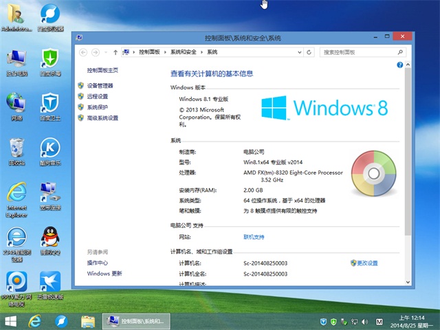 【2014.09】电脑公司Ghost W8.1X64特别装机版(64位)系统