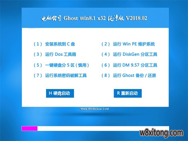 电脑公司Ghost Win8.1x32位纯净版V2018.02版本经严格查杀:无木马程序、无病毒、无流氓软件及相关插件,电脑公司Win8.1x32位纯净版系统安装全过程约6分钟,部分机子可达5分钟,高效的装机过程。集成了最新流行的各种硬件驱动,首次进入系统即全部硬件已安装完毕,通过数台不同硬件型号计算机测试安装均无蓝屏现象,硬件完美驱动,电脑公司Ghost Win8.1x32位纯净版系统经过优化,启动服务经过仔细筛选,确保优化的同时保证系统的稳定。电脑公司Win8.1x32位在不影响大多数软件和硬件运行的前提下,已经尽可能关闭非必要服务,自动安装 AMD/Intel 双核 CPU 驱动和优化程序,发挥新平台的最大性能。