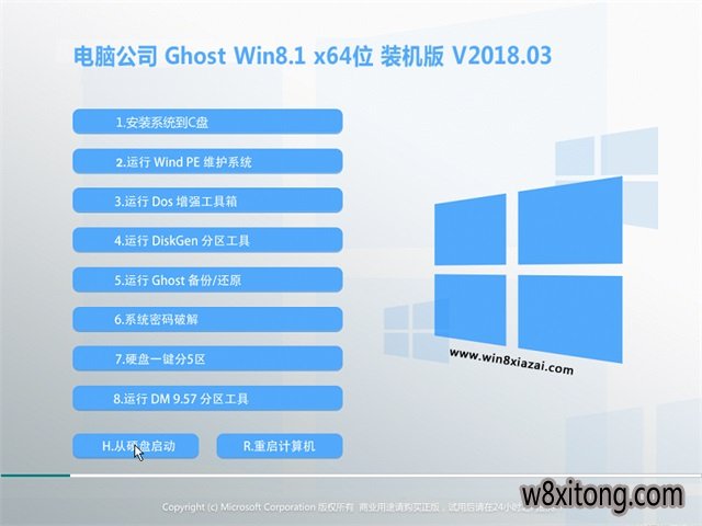 电脑公司Ghost Win8.1x64位装机版V2018.03版本经严格查杀:无木马程序、无病毒、无流氓软件及相关插件,电脑公司Win8.1x64位装机版系统安装全过程约6分钟,部分机子可达5分钟,高效的装机过程。集成了最新流行的各种硬件驱动,首次进入系统即全部硬件已安装完毕,电脑公司Win8.1x64位装机版V2018.03通过数台不同硬件型号计算机测试安装均无蓝屏现象,硬件完美驱动,电脑公司Win8.1x64位装机版系统经过优化,启动服务经过仔细筛选,确保优化的同时保证系统的稳定。电脑公司Win8.1x64位系统在不影响大多数软件和硬件运行的前提下,已经尽可能关闭非必要服务,自动安装 AMD/Intel 双核 CPU 驱动和优化程序,发挥新平台的最大性能。