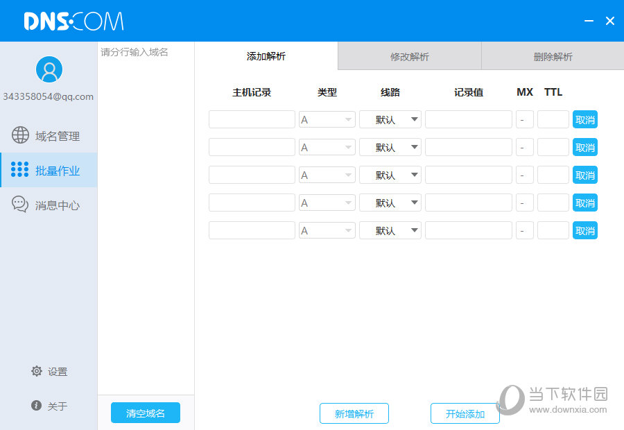 DNS域名解析软件是DNS、COM开发的一款免费的、实时在线的DNS管理工具。DNS域名解析软件完美支持批量添加域名、批量添加修改域名解析、域名批量分组管理等功能!DNS.COM是国内唯一一家上市的DNS智能云解析服务商。