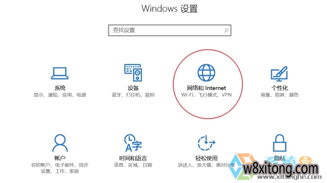 1、同时按住【win】+【i】进入设置界面,点开“网络和Internet”选项。如下图: