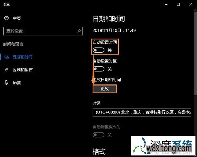 1、如果以上办法行不通,先做上办法1~5步,以后关闭自动设置时间,打开更改。