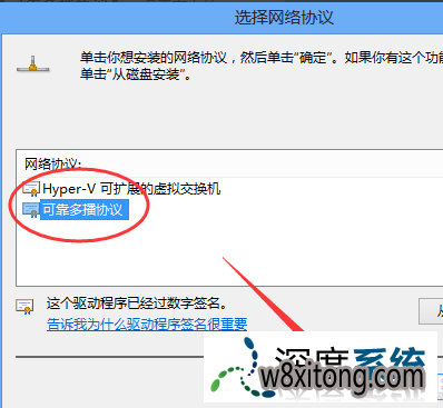 选中【可靠多播协议】,打开右下角【确定】,安装成功问题处理