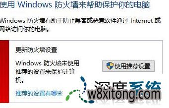 3、在防火墙界面打开【使用推荐设置】便可打开防火墙。