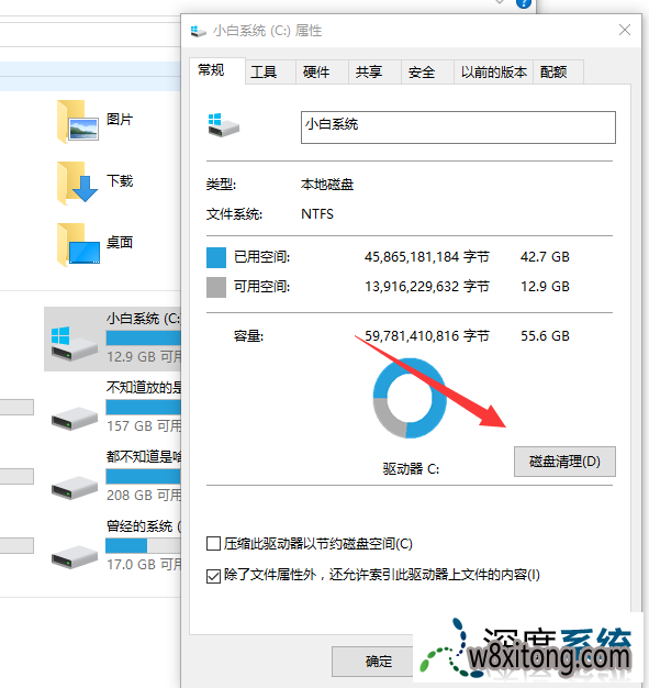 1、打开桌面此电脑图片打开资源管理器,右键需要清理的磁盘打开属性,以后打开磁盘清理。