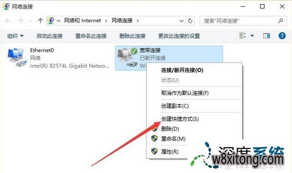 深度win8系统怎样设置宽带连接,上面是详细的设置步骤,依据这个步骤可以设置宽带链接和快捷方式。