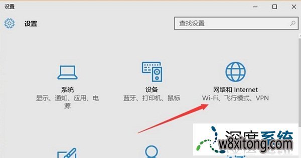 第二步:进入设置界面,然后选中网络和internet,如下图: