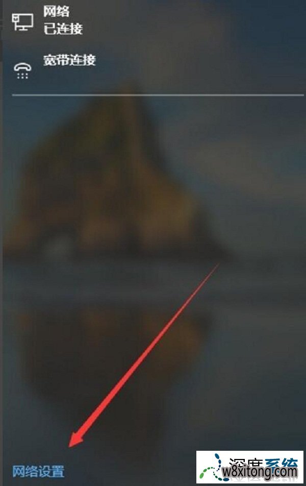 第一步:在右下角打开网络链接,然后在跳出的窗口中选中左下角的网络设置,如下图: