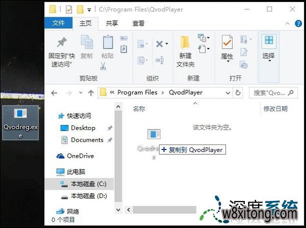 1、首先咱们按照“不能打开要写入的文件” 框中的文件路劲,依次打开,比如:C:\program Files\Qvodplayer\Qvodreg.exe ,咱们打开此电脑,依次展开C:\program Files\Qvodplayer\文件夹;