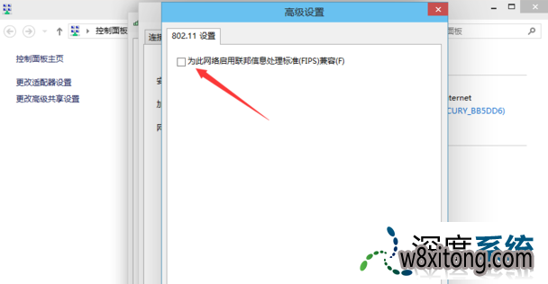 在跳出的高级设置里面可以看到“为此网络启用联邦信息解决标准(Fips)兼容(F)"把前面勾上