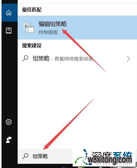 在打开的小娜搜索框中写入关键词组策略,这时就可以在上面的搜索结果中找到本地组策略了