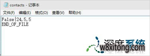 3、删掉contacts.txt中除第一行和最后一行以外的所有内容,如下图所示: