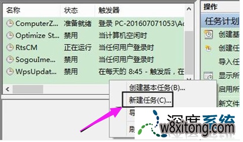 右键打开中间的空白处,选中“新建任务”。
