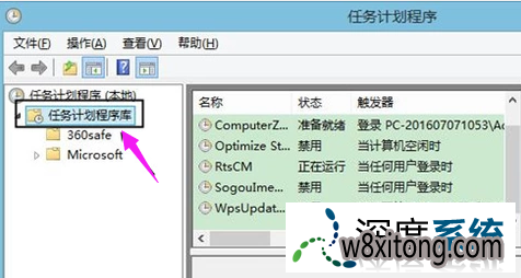 打开:左侧的任务计划程序库。