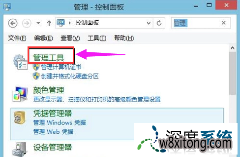 打开控制面板,萝卜家园,选中“管理工具”。