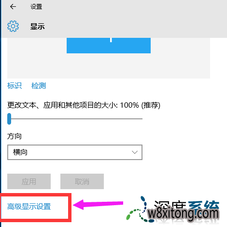在新打开的窗口里,用鼠标滚轮滑倒最下方,打开高级显示设置。