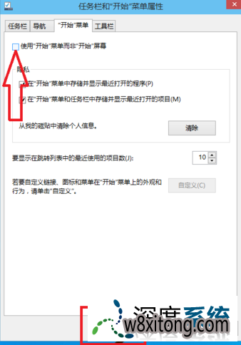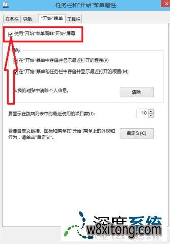 在跳出的窗口中选中“开始菜单”