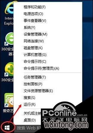 1、右键开始打开win8 开始菜单,然后选中“运行”;