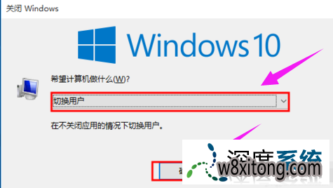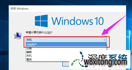 在深度win8系统中按关机快捷键Alt+F4打开“关闭windows”对话框,萝卜家园,打开下拉框选中切换网友选项。