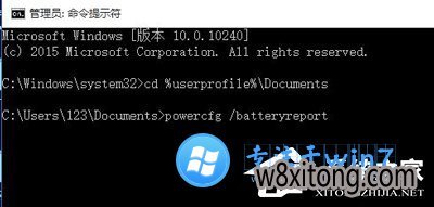 3、写入命令:powercfg /batteryreport,回车,我的文档中会生成保存一个html文件