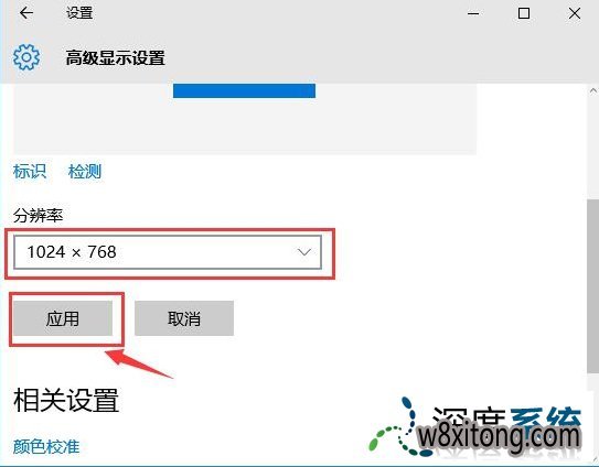 5、在高级显示设置中将分辨率修改成1024×768便可。如图所示: