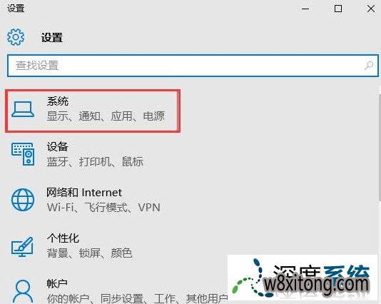 2、进入设置以后打开第一个“系统”。如图所示: