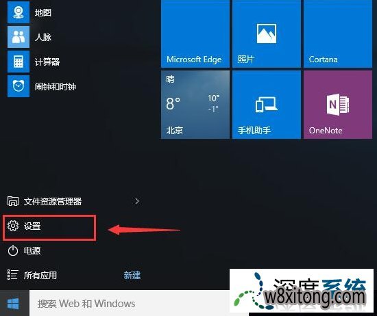 1、首先打开左下角的开始,然后打开“设置”(网友也可以用小娜打开),如图所示:
